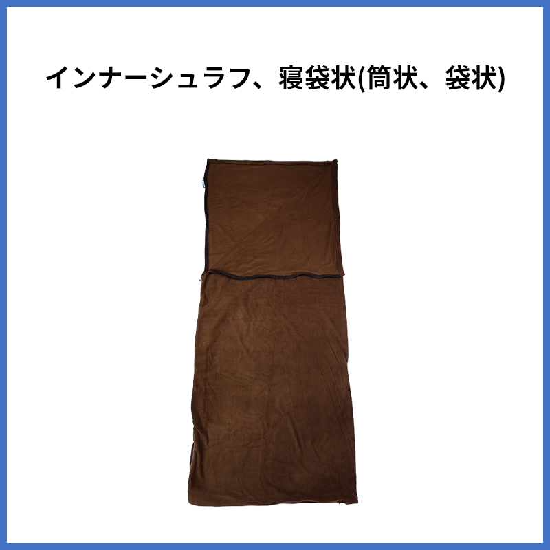 “インナー” “シュラフ”という名称のとおり、シュラフ(寝袋)の中に入れて使うものです。毛布(ブランケット)と違い、筒状(袋状)になっています。