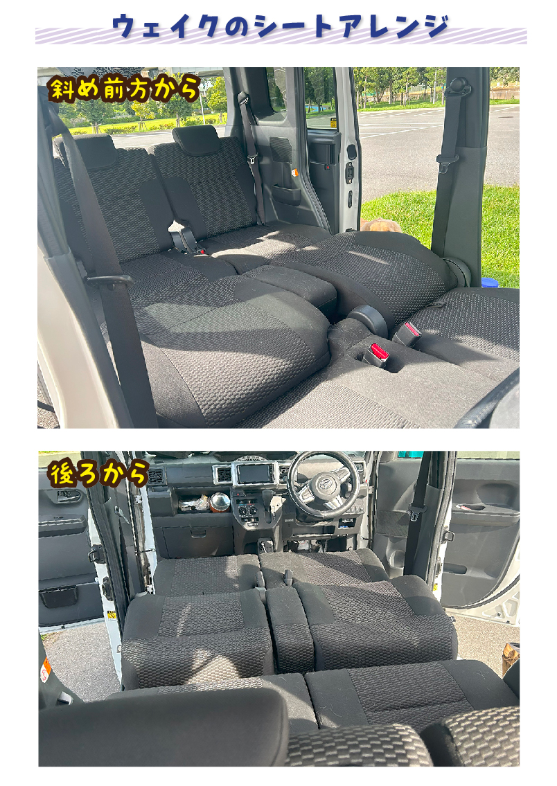 ウェイクでの車中泊におすすめです。