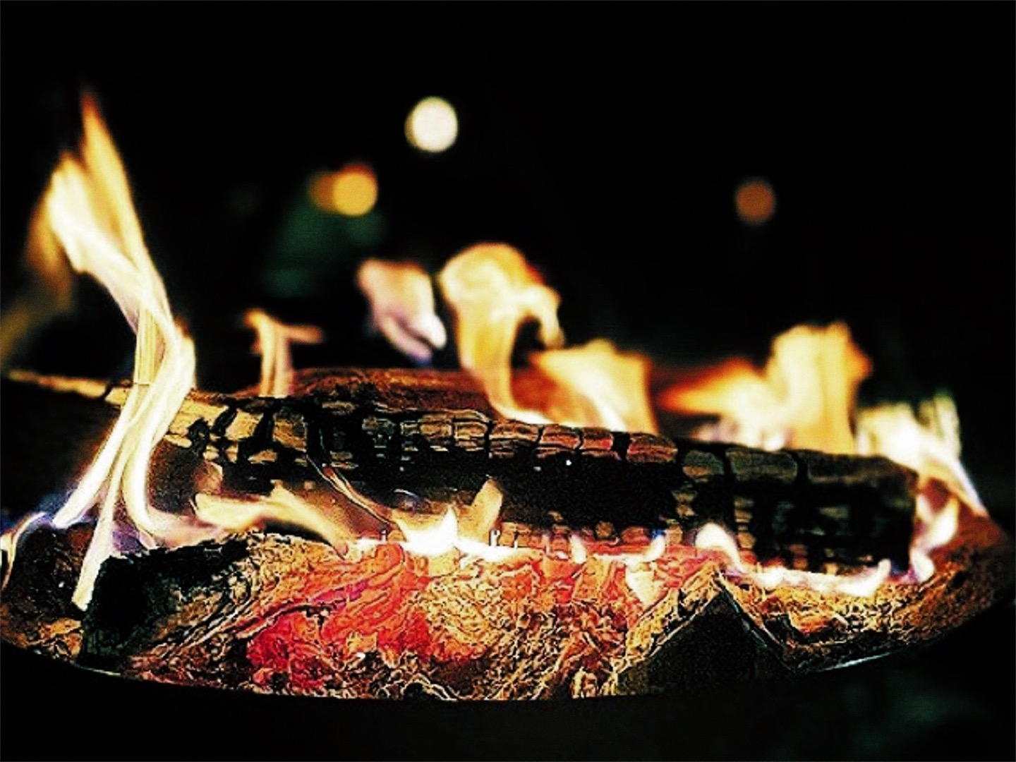 焚き火台の前で無心に炎を眺めていると、時間の感覚が消えてしまいます。1時間、2時間なんてあっという間。気が付くと最後の薪も燃え尽きているなんてことも…。