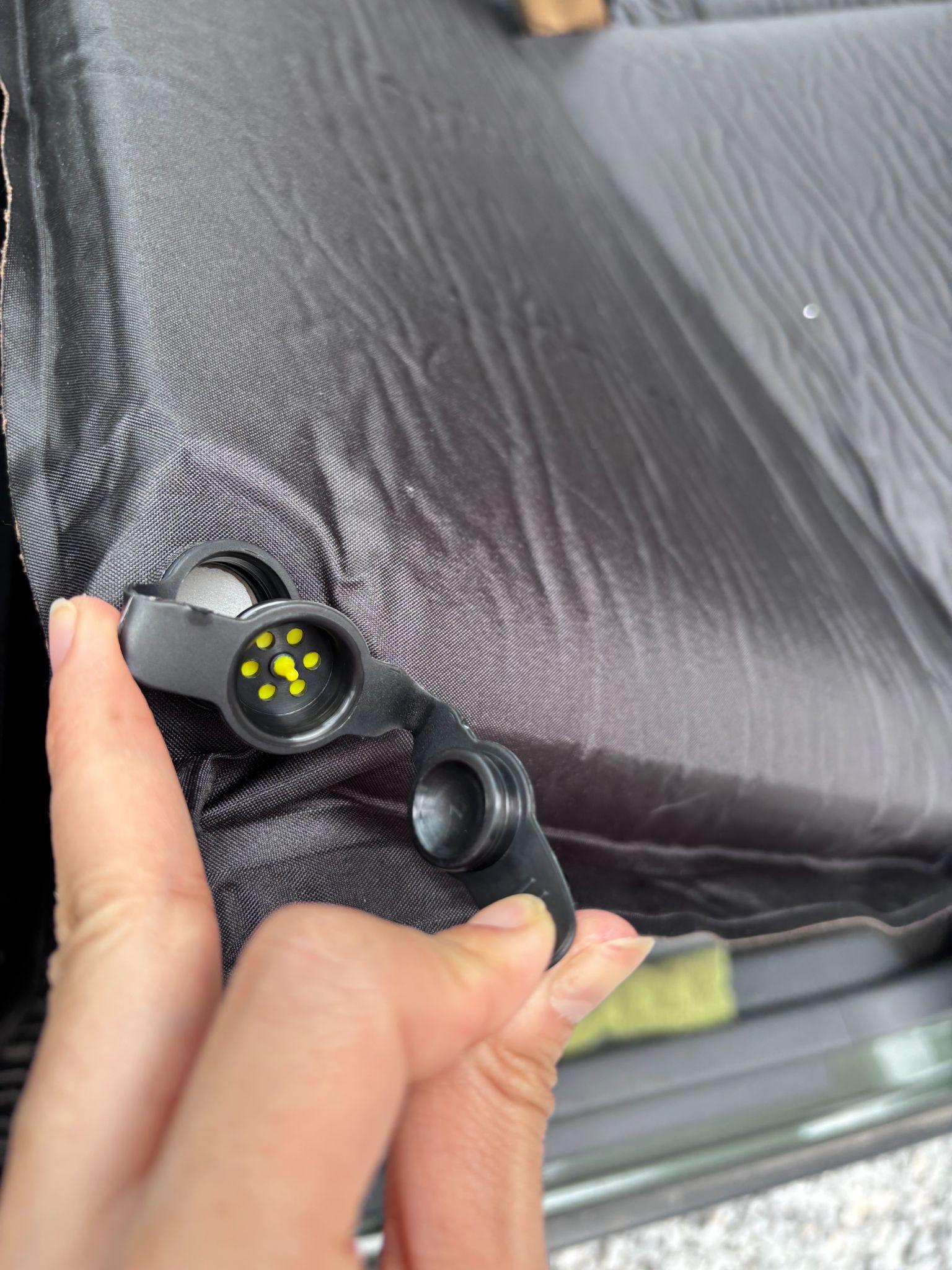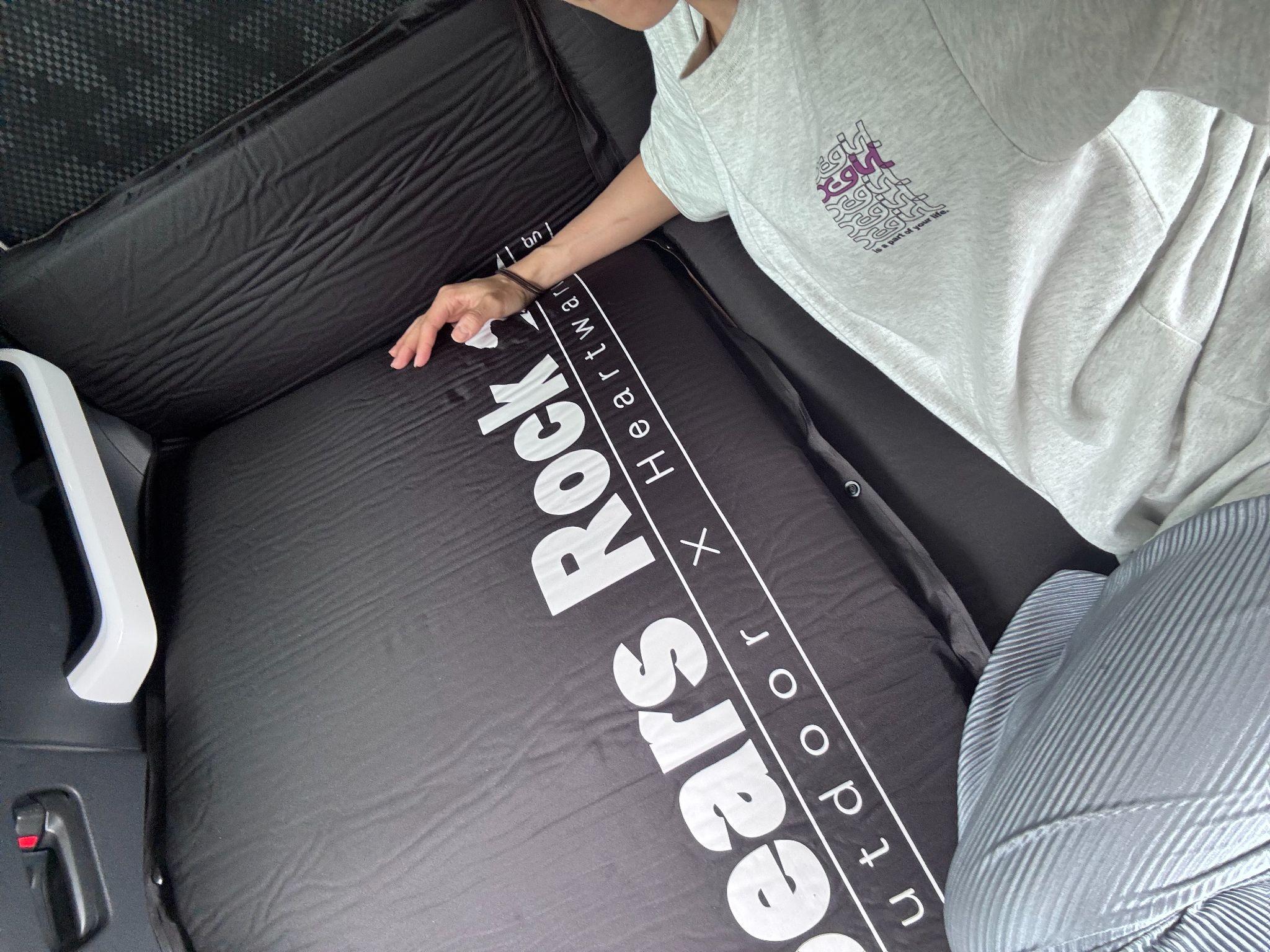 初めて車中泊マットを使用しましたが、収納袋から出して空気を入れるマット端にある空気栓を開けるだけで簡単に膨らんでふかふかのマットレスになりました。