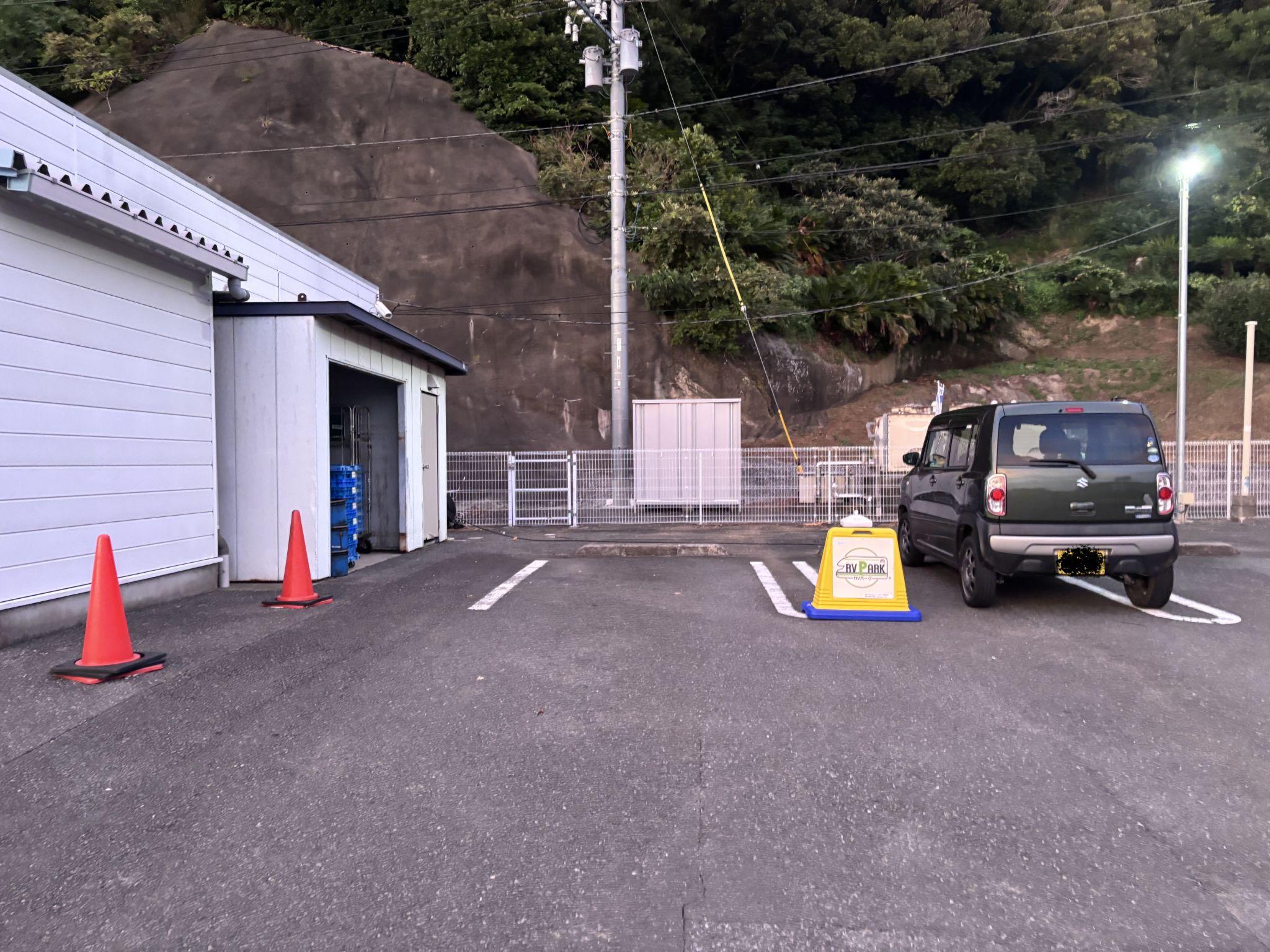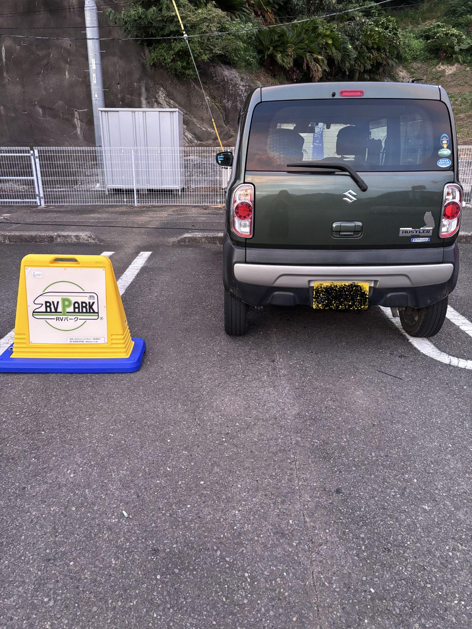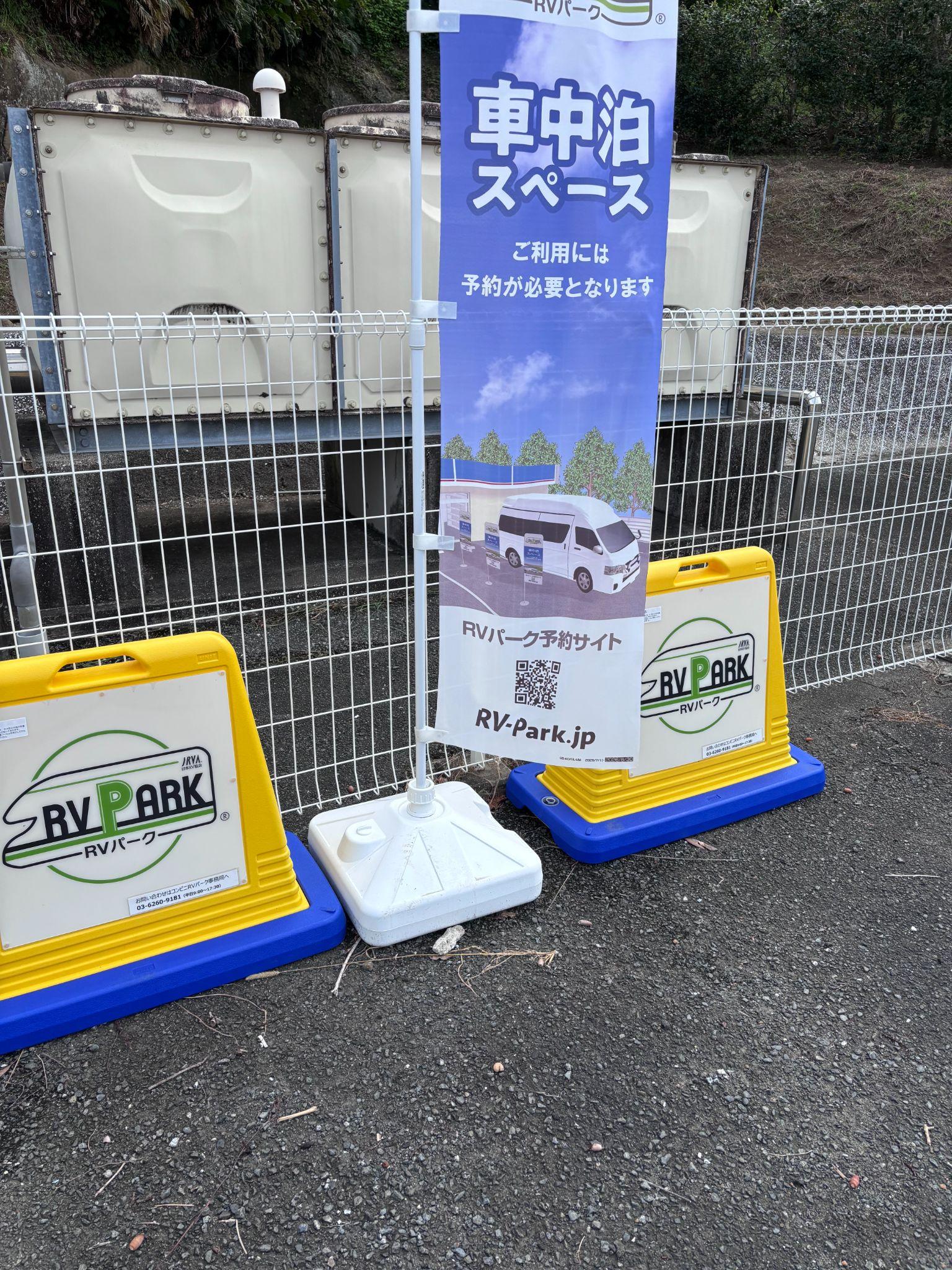 宿泊当日はチェックイン時間の5分程前に到着しましたが、すでに車中泊スペースが準備されていました。店舗のすぐ隣の駐車スペースを利用できます。車中泊スペースと分かる目印の看板と旗があり非常にわかりやすく、迷うことなく駐車できました。