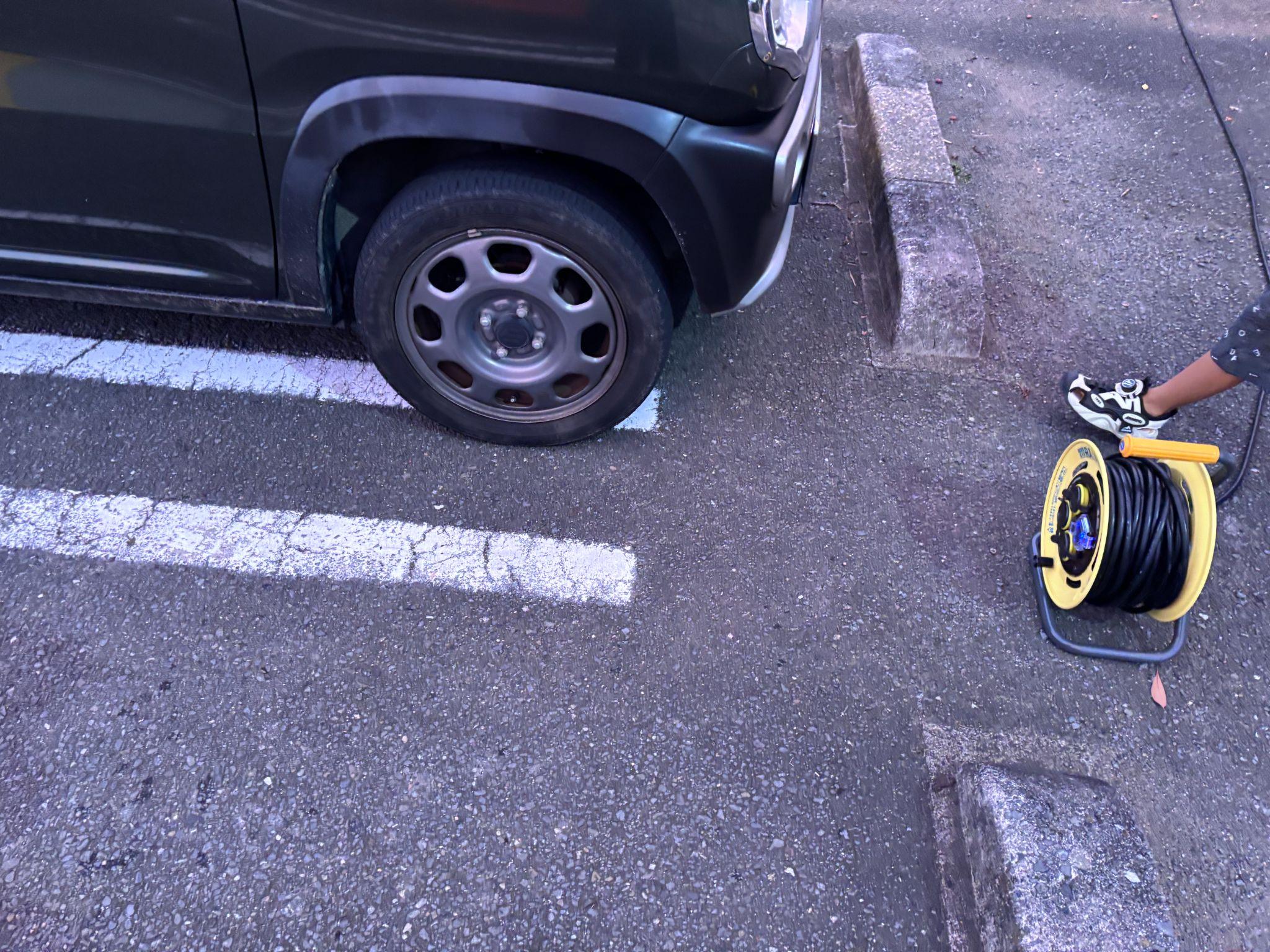電源は延長コードで用意されているので、車や使用したい機器の設置位置に合わせて調整可能です。