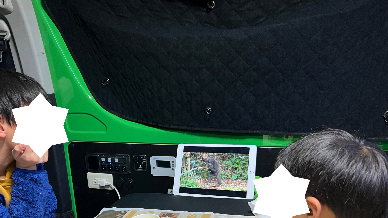 走行中は車載エアコンの暖房を使えますが、後部座席までは十分に温風が回らず、スライドドアの隙間からも冷気が流れ込んでくるのでかなり冷え込みます。床も板張りなので、足元からじわじわ冷えてきます。特に夜間の長距離移動中は、ひざ掛けだけでは冷えを防ぎきれず、つま先がどんどん冷たくなります。
