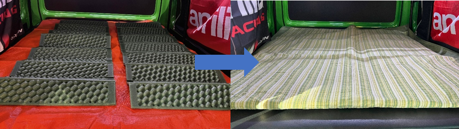我が家では、このレイヤーを出発前にセットして常に敷きっぱなしにしておくか、レイヤーの状態のままベッドキットの上でじゅうたんの様に丸めておき、寝るときにサッと広げられるようにしています。これにより底冷えのストレスがかなり軽減されます。