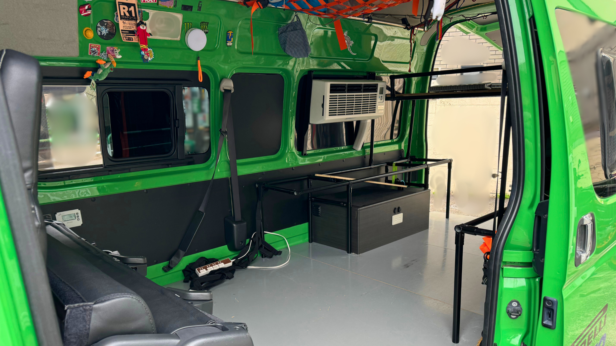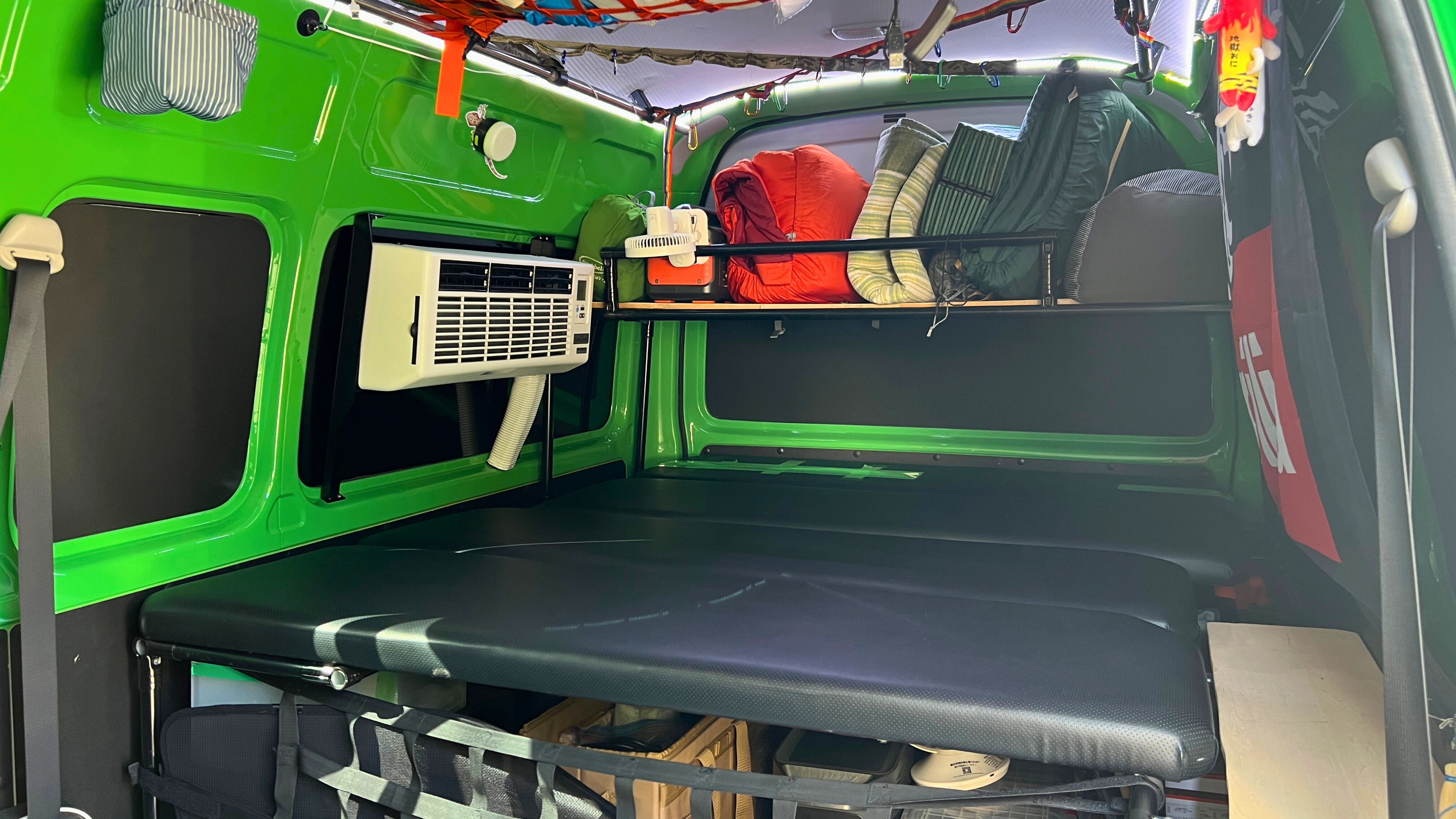 また、後部座席に温風吹き出し口がなく、FFヒーターや後付けのエアコン暖房もないため、使えるのはフロントシートの車載エアコンのみです。そのため、特に停車中や就寝時の寒さ対策には工夫が必要です。