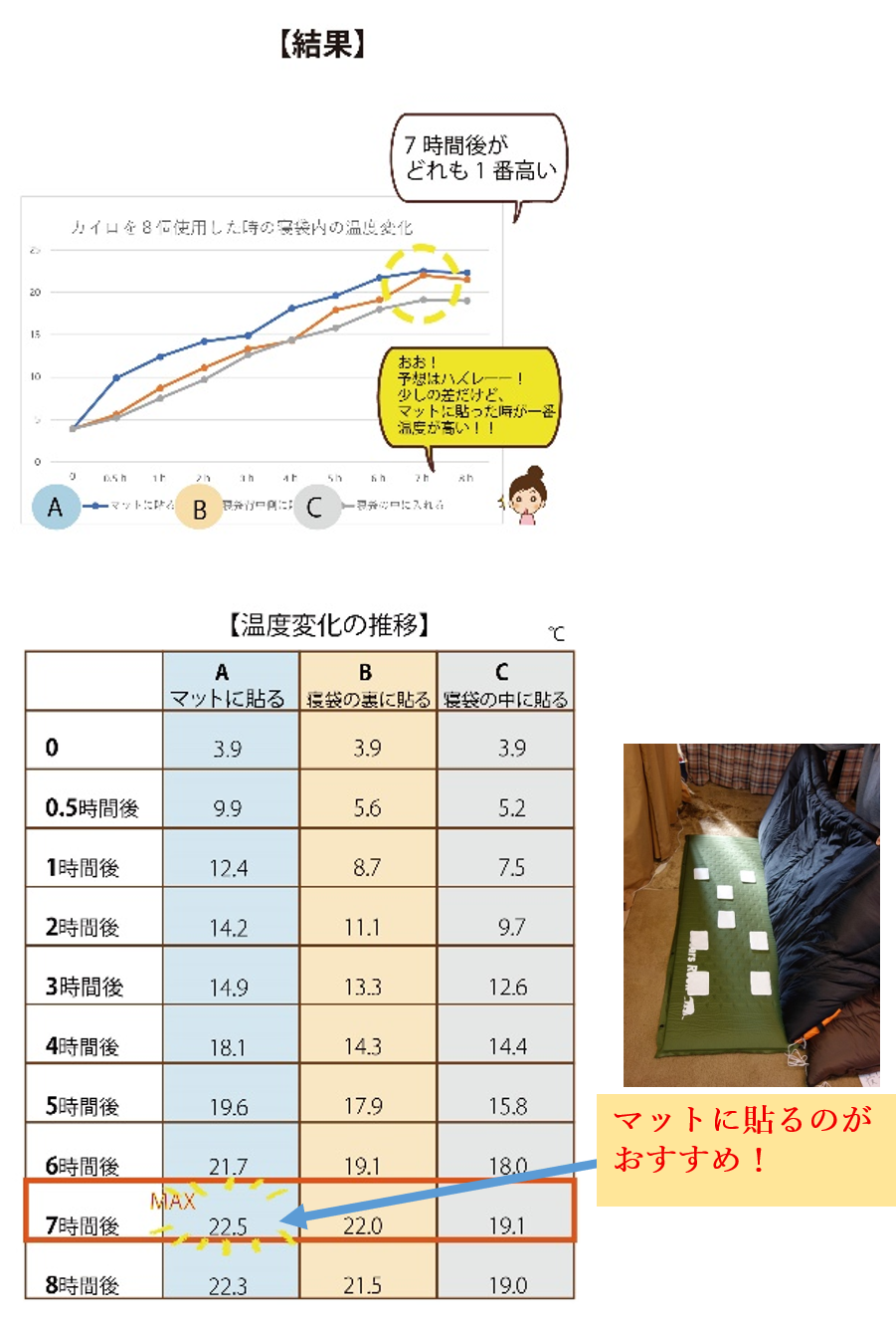 下記は以前カイロをどこに貼ったらあたたかいかの実験結果です。