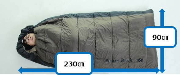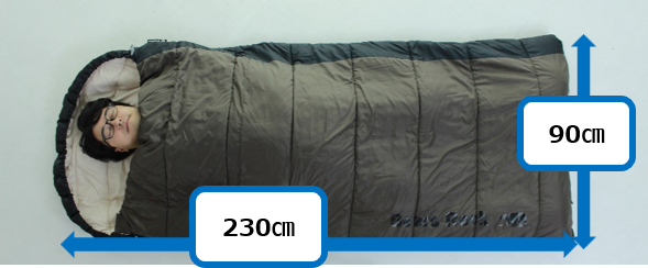 特徴:体の大きい方でもゆったり眠れる横幅90cmのワイドサイズ。①の封筒型寝袋-15℃FX-403より幅は+10cm広め。