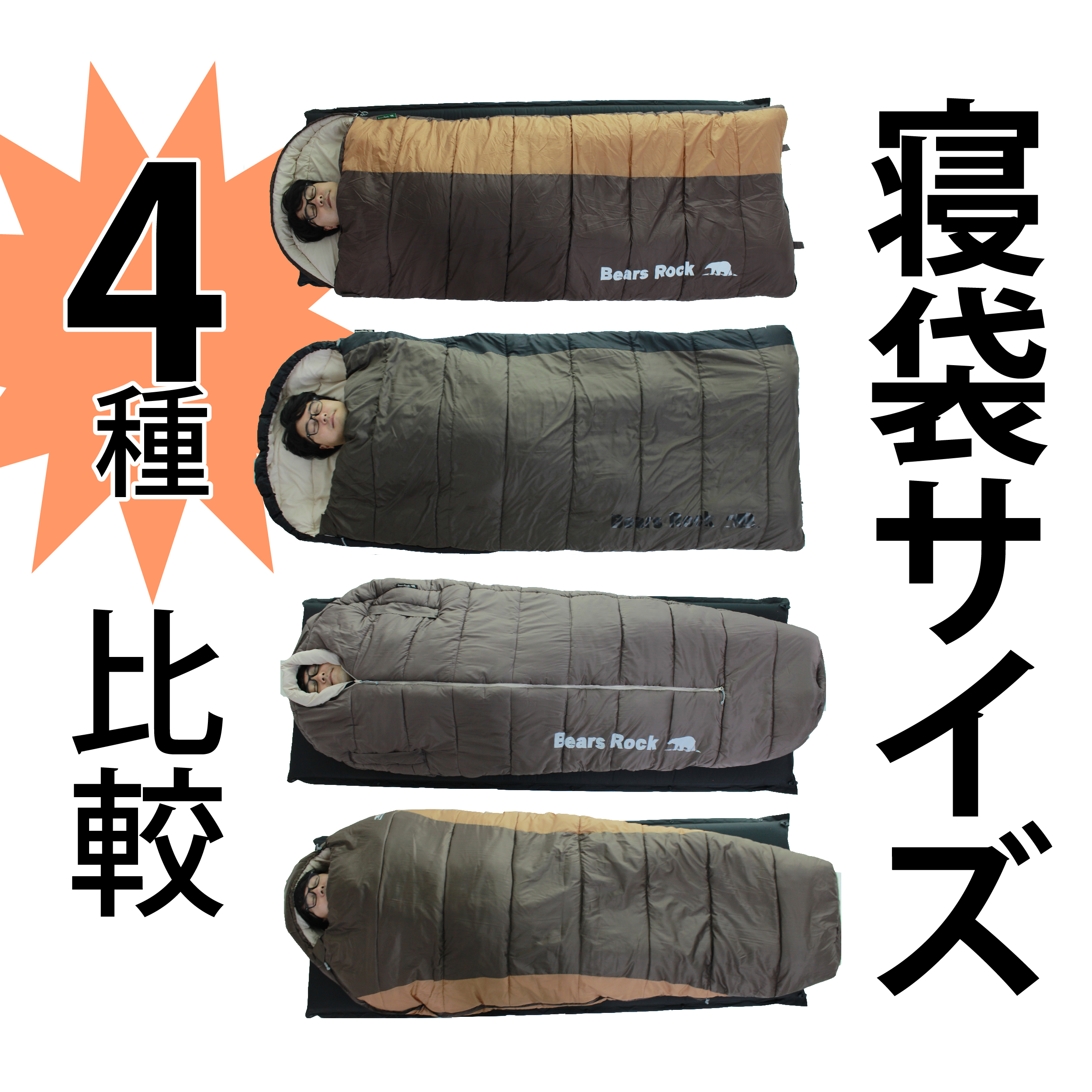 今回、マサキさんに試してもらう寝袋は下記4種類です。