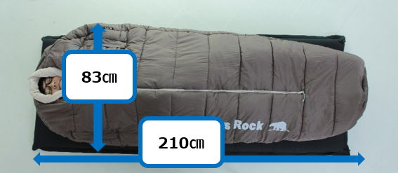 特徴:ふっくらとしていて暖かく、一般的な寝袋よりも幅が広く圧迫感がない。布団のように寝られる。