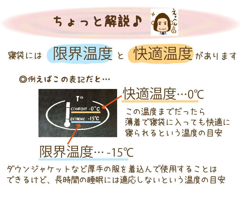 もしはっきりしない場合は、-15℃対応の寝袋がおすすめだよ!