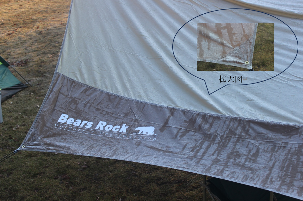 4月末でもこのようにタープが凍ることもある。(広島県のキャンプ場)