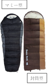 ➡主に「マミー型」「封筒型」の2種類があります。マミー型は体にフィットして保温性が高く、封筒型はゆったり寝られて着脱も簡単です。